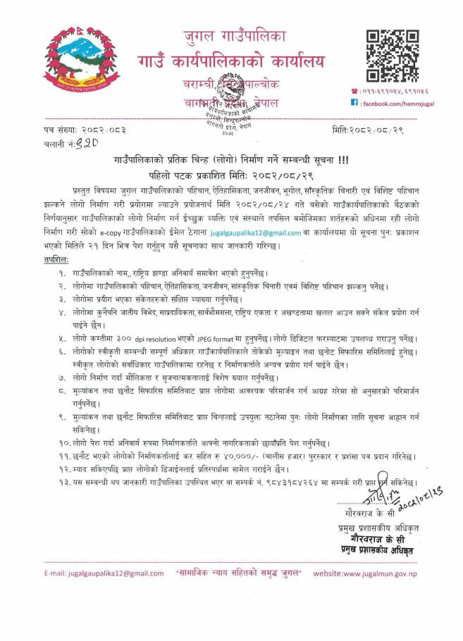 गाउँपालिकाको प्रतिक चिन्ह (लोगो ) निर्माण गर्ने सम्बन्धी सूचना!