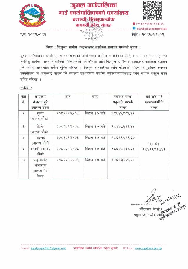नि:शुल्क ग्रामिण अल्ट्रासाउण्ड कार्यक्रम सञ्चालन सम्बन्धी सूचना!