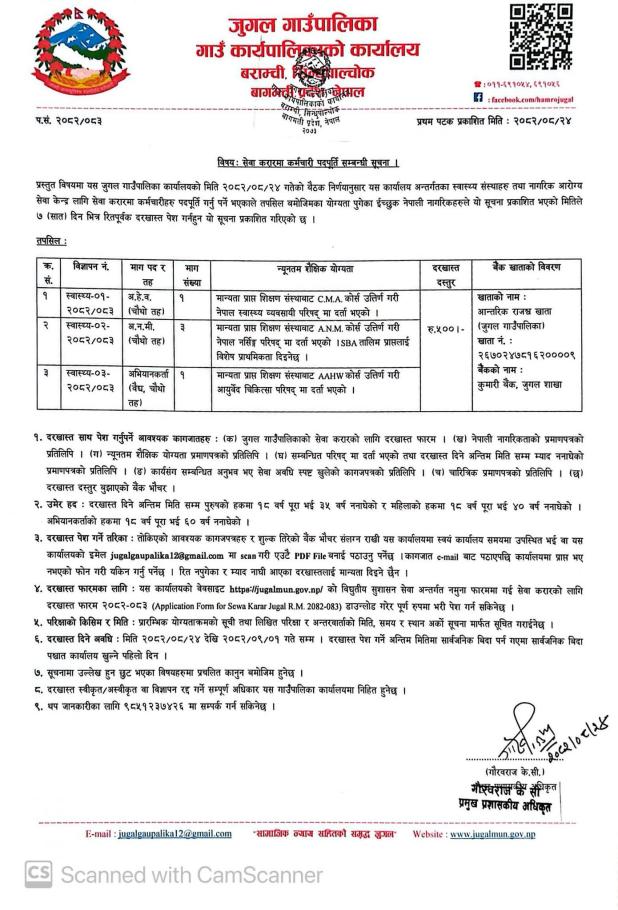 सेवा करारमा कर्मचारी पदपूर्ति सम्बन्धि सूचना!