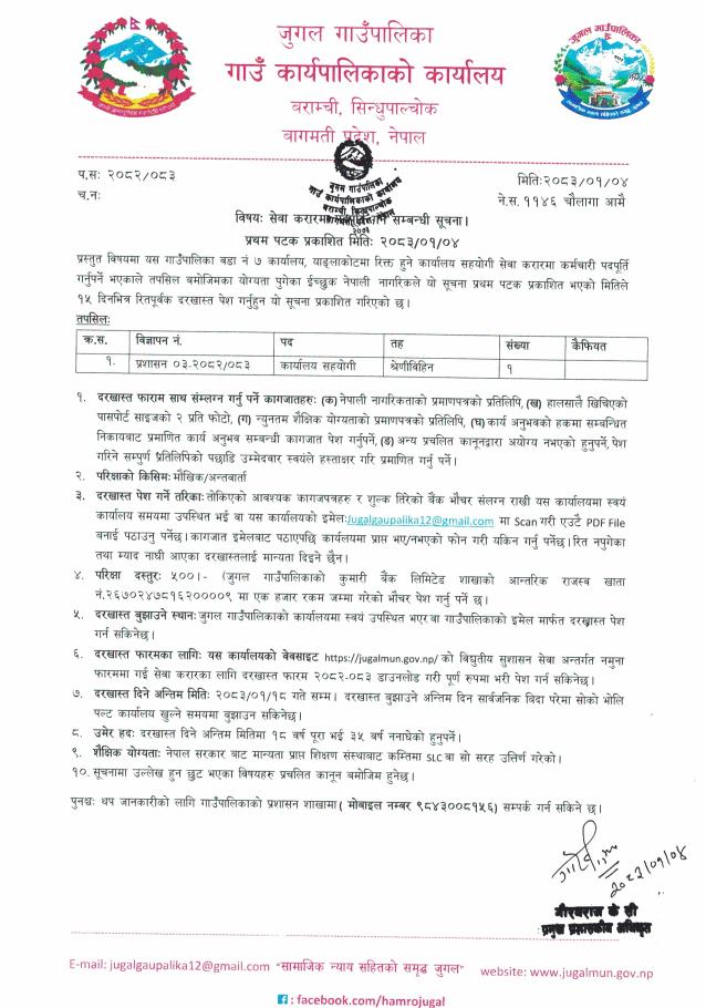 सेवा करारमा पदपूर्ति गर्ने सम्बन्धी सूचना!