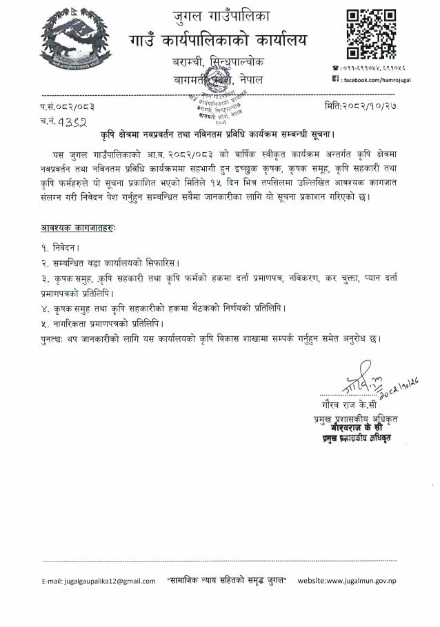 कृषि क्षेत्रमा नवप्रवर्तन तथा नविनतम प्रविधि कार्यक्रम सम्बन्धी सूचना