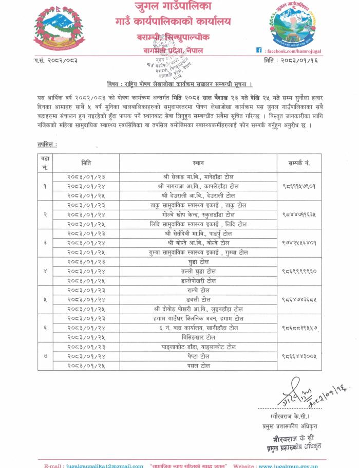 राष्ट्रिय पोषण लेखाजोखा कार्यक्रम संचालन सम्बन्धी सूचना!